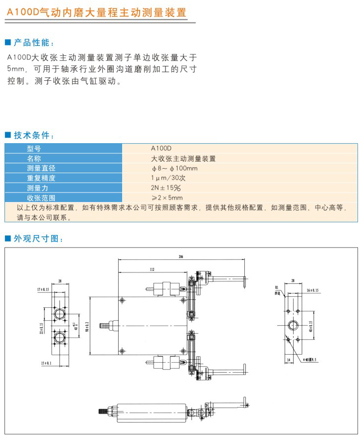 A100D氣動內(nèi)磨大量程主動測量裝置